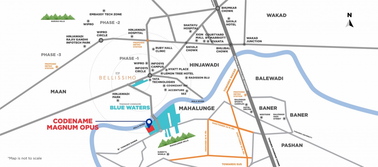 Township Codename Blue Waters now spans from Mahalunge to Hinjawadi Phase 1. The entire belt is in the fast-development zone due to the Maan-Mahalunge Hi-tech City development on one side and the Rajiv Gandhi Infotech Park development on the other.